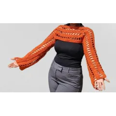 Add a touch of charm to your outfit with our Handmade Orange Crochet Bolero Shrug. Skillfully crafted with soft yarn, this lightweight shrug features an elegant open-front design and intricate crochet patterns. Perfect for layering over dresses, tops, or camisoles, it combines comfort with...