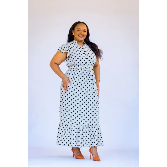 Minimum quantity for "Elegant Polka Dot Belted Maxi Dress – Classic Feminine Style" is 1.
