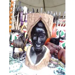 Amasunzu  – a stunning, hand-carved wooden sculpture depicting a Rwandan woman wearing the traditional Amasunzu hairstyle.