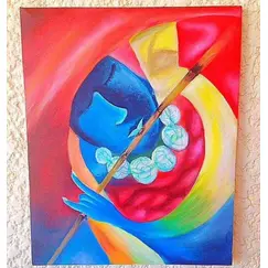 Hand Painted, Celebrite the vibrant spirit of rwandan culture with this hand painted artwork depicting traditional culture, the background patterns and additional paintings symbolize both rural life and modern growth  perfect for home decor, cultural spaces or art collectors who value african heritage