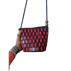 The MUNYANA Small Red and Black Beaded Shoulder Bag is a handcrafted pearl-weave designer tote, perfect for both casual and evening wear. This versatile bag offers a chic, lightweight design with enough room for all your essentials.