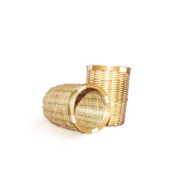 Multipurpose Bamboo Wicker Holder: This versatile handmade bamboo wicker holder can be used to organize pens, makeup brushes, or kitchen utensils, making it an essential accessory for office desks, home decor, or kitchen spaces.Handwoven Craftsmanship: Each holder is skillfully woven from natural vine and bamboo, giving it a unique, eco-friendly appeal that complements any rustic or modern aesthetic.Compact and Functional Design: The cylindrical shape is perfect for keeping your space tidy and organized, whether you're using it on your office desk, vanity, or kitchen counter.Durable and Sustainable Material: Made from high-quality bamboo and vine, this holder is both durable and sustainable, offering long-lasting storage solutions while being environmentally friendly.Stylish and Practical: Its natural bamboo finish adds a decorative touch to any room, while its lightweight design ensures it is easy to move and clean, making it a practical yet stylish addition to your home or office.