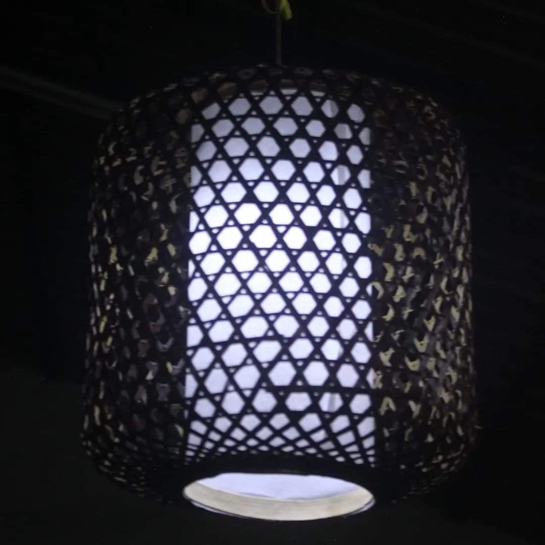 Black Wooden Bamboo Lamp – Dimmable Vintage Boho Woven Bamboo Ceiling Light Fixture