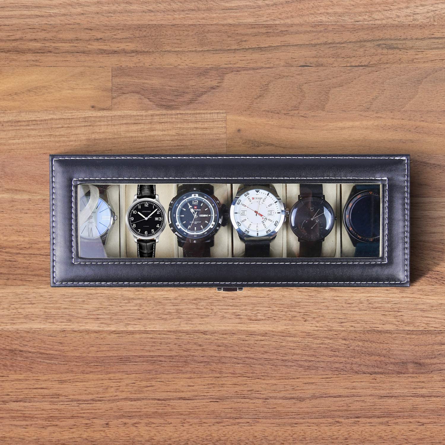 Watch Organizer, 6 Slot Watch Box PU Leather Watch Storage Case, Birthday Gifts Presents for Men and Women