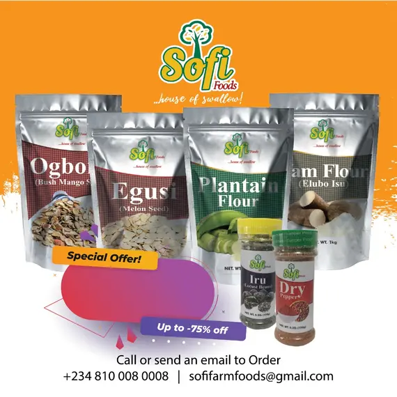 Yam Flour 1kg Plantain Flour 500g Egusi 250g Ogbono 250g Locust Beans 100g Dry Pepper 100g