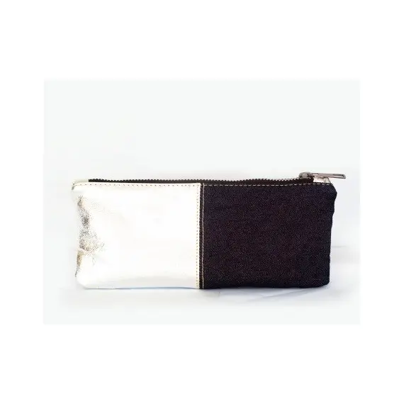 DINGO15008 Silver Sheep Skin & Denim Rectangular Makeup Bag
