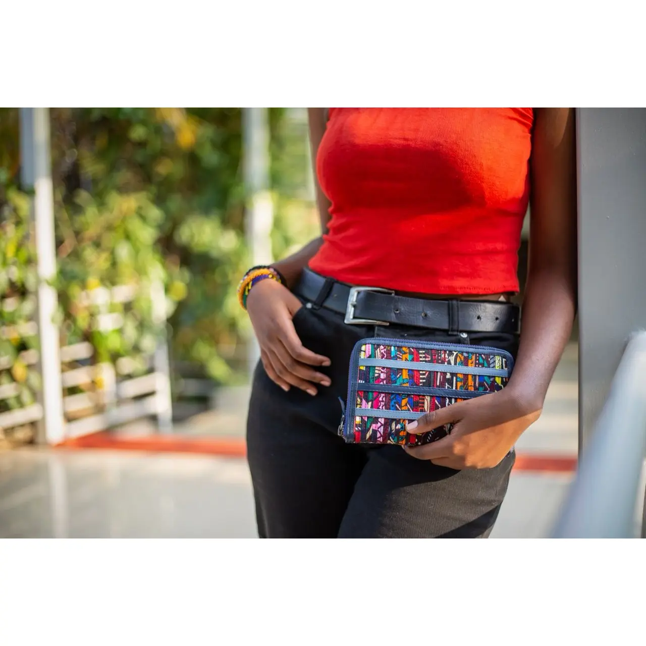 DOKMAI Mini Cloth-Print Leather Clutch – Handmade Fashion Wallet for Women | Made in Rwanda