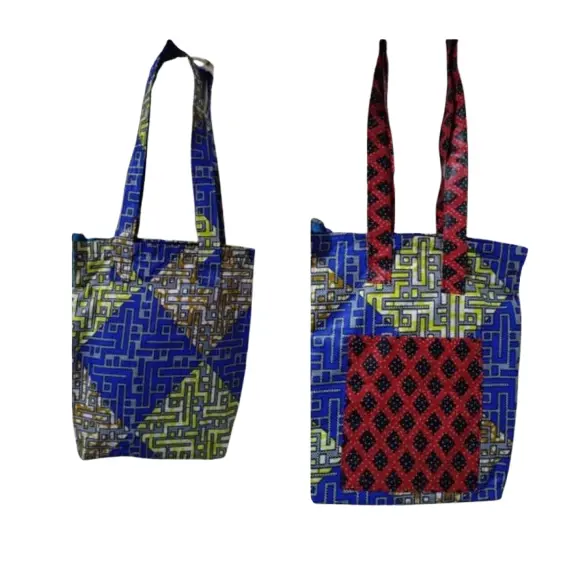 Stylish and spacious Kitenge tote bags, handcrafted in Rwanda and