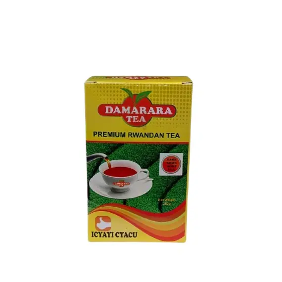 Damarara Premium Rwandan Tea is a proudly local product made from carefully selected tea leaves grown in Rwanda’s fertile highlands. This blend delivers a deep red color, smooth taste, and invigorating aroma that reflects the purity and richness of Rwandan soil. Packaged in a 250g box, it’s ideal for daily enjoyment—whether served hot in the morning or as a calming evening drink. The label “Icyayi Cyacu” (Our Tea) emphasizes community pride and local heritage. With its bold flavor and premium quality, Damarara Tea is a staple in every Rwandan household and a must-try for tea lovers everywhere.